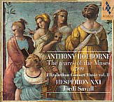 ◎《ミューズの涙》 アントニー・ホルボーン 5声のパヴァーヌ,ガイヤルド,アルマンドと その他の厳粛で優美な小エアー 〜パヴァーヌ「希望」(Bana Speranza) ガイヤルド「ミューズの涙」 アルマンド「選択」 ガイヤルド「やれやれ休日だ」 パヴァーヌ「下流」(Infernum) ガイヤルド パヴァーヌ ガイヤルド アルマンド「夜警」 ガイヤルド「子守歌」 ガイヤルド パヴァーヌ「メランコリーのイメージ」 ガイヤルド Ecce quam bonum ガイヤルド Sic semper soleo パヴァーヌ Decrevi ガイヤルド ガイヤルド「私の安心」 パヴァーヌ「楽園」 ガイヤルド「ため息」 アルマンド「すいかずら」 ガイヤルド「妖精のラウンド」 パヴァーヌ「葬送」 ガイヤルド アルマンド「愛の果実」 ガイヤルド「聖夜に降るように」 サヴァール(指揮&ヴィオール),エスペリオンXXI 仏 ALIA VOX AV9813 サヴァールとエスペリオン21の新譜で,エリザベス朝のコンソート・ミュ ージックVol2として,ホルボーンのコンソート曲集を収録したCDが発売に なりました。ちょうど夏真っ盛りで,こういう音楽を聴いて涼むのもいいので はないかと思い入手しました。 ホルボーン(1545頃?〜1602)は,ジョン・ダウランドとほぼ同時代に活躍し た音楽家のようで,その生涯についてはよく分かっていないようです。ダウラ ンドはリュート歌曲集第1集の第1曲「ぼくは見た,あの人が泣くのを」をホ ルボーンに献呈しています。 このCDに収録されているのは1599年に出版された,表記のような長い タイトルを持った65曲からなる曲集からの25曲です。表題がついている曲 とついていない曲があり,翻訳できなかったり自信がないものは欧文表記及び 併記していますので,お分かりでしたらご教示いただけると幸いです。 作品の印象は,後のイタリアバロックの作品のようなスカッと爽快な感じで はなく,多少地味で落ち着いた雰囲気なのですが,当時はダウランドの「涙の パヴァーヌ」が巷間で大ヒットしていたそうで,こういったメランコリックな 旋律が当時のイギリスでは広く受け入れられていたということでしょうか。編 成は打楽器やオルガンを伴ったり,アップテンポ気味の舞曲が楽しめたりと変 化に富んでいて,聴き飽きることがなく楽しめます。 演奏の方は,作品をよく消化しているということなのか,自然でアットホー ムな雰囲気で,聴き手に対して存在感を主張せずに,ただそこに佇んでいるよ うな感じの絶妙な塩梅の演奏を聴かせています。 この演奏は古楽の名手たちの手練の技が冴えており,対峙して聴けば,その 高い技量と抜群の演奏センスに感嘆することしきりなんですが,あえて佳作の 佳演に徹しているところがこの録音の魅力であり,肩の力を抜いて気軽に楽し む方がこのCDには合っているようにも思います。