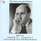 ◎ベートーヴェン ピアノ・ソナタ第32番 <1961.3.13> ピアノ協奏曲第4番 <1952.1.19> ピエトロ・スカルピーニ(ピアノ), フルトヴェングラー指揮,ローマイタリア放送響 米ARBITER 131 ※参考CD:伊AS disc 373 伊URANIA URN 22.216 貴重な歴史的音源をリリースし続けている米ARBITERレーベルから,今度はイ タリアのピアニスト,ピエトロ・スカルピーニ(Pietro Scarpini,1911-1997) の録音を収録した1枚が発売になりました。 収録曲のうち,ソナタの方は初出音源です。協奏曲の方はフルトヴェングラ ー指揮の以前から知られた録音ですが,CDはCD−R盤を別とすると,イタ リアのAS disc から1990年に発売されたのが最初で,その後もイタリアの レーベルからリリースされていました。さらに,このCDがリリースされて間 もなくしてイタリアのURANIAからもCDが発売されました。 まずは既出盤もあって音質も気になる協奏曲の方から聴いてみると,今回の ARBITER盤の音質は終始スクラッチノイズが聴こえるものの,オリジナル乃至 それに近い音源からストレートにマスタリングしたような印象で,音色のニュ アンス,演奏上の表情付けの機微,演奏会場の雰囲気などを感じ取ることがで き,物理特性上はかなり劣悪と言わざるを得ないのは事実としても,私自身は この音質には強く惹き付けられました。 一方,既出のAS disc盤は,高域がカットされていて鼻づまり気味の音質で, 大雑把でニュアンスがいまひとつ伝わらないように思えますし,URANIA盤は, 明瞭で隈取りのくっきりした音質ですが,カップリングの運命交響曲と同様に ニュアンスや雰囲気もカットされてしまい,背後に不気味な静寂が漂っている ような音になっています。というわけで,音質の面ではARBITER盤が圧倒的に 優れていると思います。 演奏に関してはARBITER盤を聴いた感想を書き込みたいと思いますが,聴き 始めてすぐに気付くのは,スカルピーニのピアノの軽快な音色と明快なタッチ で,この作品の穏やかな魅力をあますことなく描き出しているように思います し,確かに表現としてはやや小粒で,もう少し堂々とした表現を求めたい気が しないではないものの,その知的な清潔感と愉悦性に満ちた演奏は,名演あま たあるこの作品の録音の中でも,特別な魅力を有していることは疑いありませ んし,この演奏からあのミケランジェリの演奏まではそう遠くないとも思って しまいました。 フルトヴェングラー指揮のローマイタリア放送響も,運命交響曲での恐ろし くシリアスな演奏とは大きく異なっていて,もっと力を抜いて,アンサンブル の妙味を聴かせているような印象で,耳で聴いただけではフルトヴェングラー の指揮とは思えないほど主情性を排した古典的な演奏なので,ちょっと驚いて しまいましたが,フルトヴェングラー云々ということにこだわらなければ,こ れはラテン的明晰さによって描き出された素晴らしい名演だと思います。 フルトヴェングラー指揮のこの作品は,大戦中のコンラート・ハンゼンとの ライヴ録音があって,その格調高いピアニズムと,深々としたロマンティック な味わいと,輝かしい高揚感にあふれる名演として名高いものですが,スカル ピーニとの演奏はこれとは大きく印象が異なるとはいえ,それぞれに傾聴すべ き名演といえるのではないでしょうか。 続いてこのCDに収録されている,世界初リリースとなるピアノ・ソナタ第 32番ですが,さすがに作品が作品だからか,シリアスかつ集中度の高い演奏 を行っており,ここでも明快なタッチと音色が魅力的ですが,この作品の演奏 としては腰高に感じられ,今ひとつ噛み応えが欲しいように思えてしまったの も事実で,この録音に関してはあまり真剣にならずに楽しむことができるなら ば,魅力を感じることができると思いますが,不満に感じられる方も少なくな いかもしれません。 それと,このソナタの録音を聴いていて意外に思ったのは,早いパッセージ などでけっこう音符を落としてしまっていて,協奏曲の演奏では特に不安を感 じなかっただけに,こんなにテクニックが弱いピアニストだったのだろうかと 驚いてしまいました。 いろいろ書いてしまいましたが,このARBITER盤は,協奏曲では画期的に良 好な音質が聴けて,演奏も独自の魅力を誇る素晴らしい内容でしたし,ソナタ の方も一般的な尺度では名演とはいいかねるにしても,これもスカルピーニの 持ち味が発揮されていて,これはフルトヴェングラーファンはもちろん,ピア ノ演奏に関心をお持ちの方にもぜひとも一聴をお薦めしたい注目の1枚ではな いかと思います。