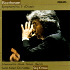◎ベートーヴェン 交響曲第9番「合唱」 <2002.9.5&7&9> アンネ・シュヴァーネヴィルムズ(ソプラノ), バーバラ・ディヴァー(アルト), ポール・グローヴズ(テノール), フランツ・バヴラタ(バス), 小沢征爾指揮,サイトウ・キネン・オーケストラ, 東京オペラシンガーズ PHILIPS UCCP-9424 今年9月の長野県松本文化会館でのライヴ録音です。小澤征爾指揮サイト ウ・キネン・オーケストラによるベートーヴェンの交響曲演奏&録音は,こ の第9をもって全9曲が完結することになります。これまでの演奏経緯は下 記のようになります。