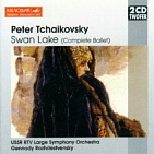 ◎チャイコフスキー バレエ「白鳥の湖」全曲 ドミトリ・ヤブロンスキー指揮,ロシア国立響 香港NAXOS 8.555873〜4 ※参考CD ロジェストベンスキー指揮,モスクワ放送響 独BMG-Melidiya 74321 66978 2 ナクソスの新譜でチャイコフスキーのバレエ「白鳥の湖」の全曲録音CDを 店頭で見つけ,さっそく入手してきました。演奏を行っているのは,ナクソス・ レーベルにロシアものを中心に数多くのレコーディングを行っている,ドミト リ・ヤブロンスキー(Dmitry Yablonsky,1962-)指揮のロシア国立響です。 何を隠そう,私はクラシック音楽を聴く楽しみに目覚めた小学生の頃からチャ イコフスキーのバレエ音楽が大好きで,特に「白鳥の湖」に関しては,定盤中 の定盤であるロジェストベンスキー指揮,ボリショイ劇場管の全曲録音LPを 長年愛聴してきました。 ところがこの録音はなかなかCD化されず,ようやく1999年になって独 BMG-MelidiyaからCDがリリースされましたが,このCDは驚いたことに,オ ケがボリショイ劇場管ではなく,モスクワ放送響と表記されていました。この CDも,BMGとメロディアの契約終了により今では廃盤になってしまいまし た。 ちょっと個人的なことを含めて書いてしまいましたが,私にとって,この作 品を聴くことは今なお大きな楽しみであり,この新しい録音がではどんな演奏 が聴けるのか大変楽しみですし,オケがロシア国立響であるという点でも期待 が高まります。 それで実際に聴いてみた印象ですが,これは実際にバレエを踊るためではな く,聴いて楽しむための演奏だからなのか,リズムの角が立ったキビキビした 印象ではなく,若干ソフトでウォームな感があるものの,メルヘンチックな雰 囲気を漂わせていますし,リッチで聴き映えのする響きも魅力的で,気構える ことなく気軽に楽しめる演奏ではないかと思います。 この作品を難しい顔をして真剣に聴くのもどうかという気もするのですが, それでも聴いていて演奏自体にいまひとつ締まりがほしい気がしましたし,ロ シア国立響(旧ソヴィエト国立響)の演奏にしては微温的な出来栄えなようで, 持てる実力を出し切った演奏とはとてもいえないのではないかとも思ってしま いました。 この録音は難しいことを考えずに気軽に楽しめて,作品の魅力を十分に味わ えるものであることから,広く万人にお勧めしてこのCD感想を終えてもいい のかもしれませんが,それでもこれを聴いていると,私自身も十分に堪能はし ていても,なんだかぬるま湯に浸かっているような気がしているのも事実であ り,結局のところ,これはあまり真面目な聴取姿勢ではなく,娯楽と割り切っ て楽しむのに最適な録音ということなのだろうと思います。 これに比べると,引き合いに出してしまったロジェストベンスキー盤の方は, ずっと引き締まった演奏であり,曲の勘所を押さえていて出過ぎたところがな く,それでいてソロの場面では心憎いばかりに見事な旋律を奏でていましたし, 何よりも,ほどよく張りつめた緊張感があります。実際にバレエを踊る際の演 奏であるなら,舞台を引き立てるためにも,そしてダンサーのコンセントレー ションのためにもこういった演奏であることが要求されるのかな,などと勝手 に想像してしまいました。
