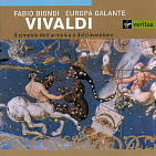 ◎ヴィヴァルディ 和声とインヴェンションのための試み ファビオ・ビオンディ(ヴァイオリン&指揮), エウローパ・ガランテ 英VIRGIN 5 45465 2 ファビオ・ビオンディとエウローパ・ガランテは,1991年にフランスの OPUS111レーベルに「四季」を録音していて,その演奏は新鮮味あふれ る表現意欲といい,弾むリズム感といい,ヴェネツィアの光と影を思わせる隈 取りのくっきりしたアクセントといい,まさに衝撃的というほかない,鮮やか なものでした。 このコンビが再び「四季」を録音したというので,これはもう飛び付いて聴 いてみたというわけですが,大変嬉しいことに,今回は「四季」だけでなく, 和声とインヴェンションのための試み全12曲が録音されました。 このCDには全12曲が番号順に収録されておらず,1,2,3,4,5, 7,11,10,9,8,6,12番という順番となっています。 さてそれで肝心の演奏なのですが,挑みかかるような表現意欲が表立って感 じられないために,聴き始めこそ前回の録音ほどの強烈な刺激がないなあ,と 思ってしまったのでしたが,確かに響きの熟成度は増していますし,沈着さも 感じられ,このコンビの円熟というべきなのかなという気もしたのですが,も ちろん,これだけで語りきれるような演奏ではありません。 今回の演奏でも,演奏のノリのよさは相変わらずですし,大胆なアクセント の対比や,聴き手を驚かさずにはおかない強烈なアタックも健在で,こういっ た面でのユニークな魅力を楽しむことができることに加え,とりわけ今回の演 奏で特筆されるのは,全てのパート,全てのフレーズの1つ1つが生き生きと していて,聴いていて心躍る思いの演奏であることで,これはメンバーの1人 ひとりがフィーリングを共有していて,それを現実の演奏で表現しうる高い技 量を有しているからにほかならないと思います。 ビオンディのソロも一層精緻さを増し,特に際立った表情付けに頼らずとも 十二分に雄弁なフレーズラインを聴かせることができるのは,たぐいまれなセ ンスの賜物というほかないと思いますし,ここぞという時の,驚くほど大胆な 表現の切れ味も相変わらず見事に決まっています。 このCDの演奏は,多言をもって論ずるよりも,とにかく聴いてみて,類い 希なセンスと生命感と心地よい刺激に満ちた『強烈な聴く喜び』を味わってい ただきたいと思います。