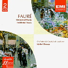 ◎フォーレ 劇音楽「ペレアスとメリザンド」(5曲)A ディヴェルティスマン「マスクとベルガマスク」(8曲)B 劇音楽「シャイロック」C (以上CD1) バラード 作品19 D エレジー 作品24 E 子守歌 作品16 F ピアノと管弦楽のための幻想曲 作品111 G 魔神たち 作品12 H 劇音楽「カリギュラ」I 歌劇「ペネロペ」序曲 (以上CD2) ミシェル・プラッソン指揮,トゥールーズ・キャピトル劇場管, フレデリカ・フォン・シュターデ(メゾ・ソプラノ:A), アリックス・ブルボン・ヴォーカル・アンサンブル(B,H,I), ニコライ・ゲッダ(テノール:B,C), ジャン=フィリップ・コラール(ピアノ:D,G), ポール・トルトゥリエ(チェロ:E), ヤン=パスカル・トルトゥリエ(ヴァイオリン:F) <1979.6 & 1980.6> 英EMI 5 74840 2 (2CD) 私自身にとっても特別な愛聴盤である,プラッソン指揮,トゥールーズ・キャ ピトル劇場管の,フォーレ管弦楽曲集が英EMIのダブルフォルテ・シリーズ で発売になりました。この録音の初出はLPで,これまでアナログ録音と思わ れていたのですが,今回はDDD表記のARTマスタリングです。このシリー ズは大手CDショップでは1000円を超える程度の価格で販売されており, 私も税抜き1000円ちょうどで入手しました。 実のところ,このCDの演奏に関しては,これまで数え切れないくらい繰り 返し聴いてきており,私自身の中ですっかりイメージが固まってしまっている 面があることは否めないのですが,今回改めて聴いてみると,トゥールーズ・ キャピトル劇場管の明晰ながら過ぎることのない,抑制の利いたアンサンブル と,微妙にローカルカラーを感じる音色は実に魅力的です。 CD1の管弦楽曲では,「ペレアスとメリザンド」でのクリヤーでひんやり した肌触りの,情感溢れる切々とした表現や,シュターデの愛惜に満ちた歌い 口には聴く度に胸打たれる思いがしていますし,「マスクとベルガマスク」や 「シャイロック」での見通しのよい明るい響きには,さりげなく知的な清潔感 を感じますし,快活な部分での爽やかなリズム感や,メロディアスな部分での 叙情性豊かな表現などは,聴いていて喜びが静かに湧き起こる思いですし,さ らにはニコライ・ゲッダのニュアンス豊かに語りかけるような歌い口も素晴ら しく,いずれも明晰な筆致で作品の持ち味を十全に生かした演奏を聴かせてい ました。 CD2は収録内容がバラエティに富んでいますが,バラードと幻想曲でのコ ラールのピアノはとりわけ印象的で,大変率直な演奏でありながら,控えめで 落ち着いた雰囲気を有していて,若々しい魅力を感じるフォーレを聴かせてく れています。 特にここで特筆大書したいのは,滅多に演奏も録音もされない作品111の 幻想曲のことで,これはフォーレ晩年の,抑制された知的な眼差しと幻想性と 精神の自由が高度に統合した希有な世界が描き出された作品で,この時期のフォ ーレの作品の中にあっても不可解と感じられる部分があったりするのも事実と しても,フォーレの作品世界の奥義を思わせる,なんともいえない充実感を感 じる作品で,喩えていうなら,ショパンの作品の中にあっての舟歌くらいの地 位にあってしかるべき作品ではないかと思っているくらいで,ぜひとも広く聴 かれるようになってほしい作品です。 ポール・トルトゥリエの独奏によるエレジーは,フォーレ自身による管弦楽 伴奏版で演奏されていますが,オケの伴奏との相性がいま1つということなの か,なんだか四角四面の演奏のように思え,持ち前の自由なファンタジーが描 き出せていないようにも思えました。 ヤン=パスカル・トルトゥリエの独奏による子守歌も,フォーレ自身による 管弦楽伴奏版で演奏されています。こちらの方はオケ共々,柔らかく優しく, ニュアンス豊かに演奏されていて,仄かな幸福感に包まれるような思いのする, 素敵な演奏でした。 続く「悪魔たち」は合唱と管弦楽のための作品で,フォーレの数少ない合唱 曲の1つなのですが,どうしてこのCDに収録されることになったのかは分か りません。これはヴィクトル・ユゴーの詩を用いた4分ほどの作品で,どこか セザール・フランクの作品のような雰囲気も感じられますが,このCDで合唱 を担当しているアリックス・ブルボン・ヴォーカル・アンサンブルは,克明で ドラマチックな合唱を聴かせていました。 劇音楽の「カリギュラ」は,編集上の事情でここに収録されているのでしょ うか。演奏は基本的にはCD1の録音と同様に,明晰な演奏で作品のキャラク ターを鮮やかに描き出しており,合唱も透明なハーモニーが美しく,曲趣に応 じた幅広い表現を聴かせてくれました。 最後は「ペネロペ」前奏曲で,このフォーレのオペラも滅多に演奏も録音も されず,かろうじて前奏曲のみが演奏機会を得ているようですが,古代ギリシャ の悲劇を連想させる劇性と,大理石のようなスタティックな重量感を感じさせ る響きも特徴的な,フォーレファンには堪えられない作品です。ここでの演奏 は重量感はあまり感じられませんが,リリカルで抑制された中にも深い情感を 感じる演奏でした