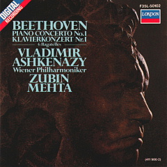 アシュケナージとメータ指揮、ウィーンフィルのベートーヴェンのピアノ協奏曲第1番ほか#40年前のCD 第468回 不定期連載ということで#40年前のCDという書き込みを続けているところですが、ロンドン(デッカ)の1985年5月25日発売の新譜に、アシュケナージのピアノ独奏と、メータ指揮のウィーンフィルによる,ベートーヴェンのピアノ協奏曲第1番に、6つのバガテル作品126ををカップリングした1枚がありました。これは、1983年11月にベートーヴェンのピアノ協奏曲全5曲の録音が一気に行われていたもので、その全集録音リリースの完結となる第4弾です。アシュケナージはショルティ指揮のシカゴ響ともベートーヴェンのピアノ協奏曲全集を録音しており、これが2度目の全集録音となります。 この録音はCDとLP(L28C1896)の同時発売で、、演奏については「レコード芸術」1985年7月号の月評での宇野功芳氏は「第1楽章は最も上出来な部分で、珠をころがすような美音が連続し、そのチャーミングなことは無類だが、そこに絶妙な色合いの変化を伴って、一カ所として棒のような表現は見られず、たった1つのスケールにも微妙な強弱がつき、しかも感じ切っている。第2楽章も透明な美音を駆使して繊細なニュアンスを映し出してゆくが、タッチに芯があり、どれほどの弱音でも一粒一粒に実在感がある。フィナーレは爽やかで流麗、まさに音楽性満点だが、それを滑らかなトーンが裏打ちする。とりわけ高音部の3度のハーモニーは陶酔的であり、ロンド主題の再々現に最高の例が聞かれる。全額賞を通じ、アシュケナージのピアノは自然で健康的で、常識性を失わず、誰にお安心して聴けるベートーヴェンといえよう。メータの指揮もスタイルは同じだが、この曲の場合、ピアニストに比べて充実度に不足がある。「バガテル」はいかにもアシュケナージらしい名演で、各曲の性格をくっきりと描き分けながら過度に陥らず、ベートーヴェンの音色の変化が存分に生きている。とくに第2曲や第4曲が印象的だ。」と評して推薦としていました。 もう一方の高橋昭氏は、「アシュケナージは、フレーズを実に美しく弾いている。しかも、あとに残す余韻がまた美しい。フレーズを構成する1つ1つの音が柔らかい感触をもち、表情と音色が細かく変化する。彼はどんな細かい楽句もストレートに弾かない。これは彼の解釈が豊かな音楽性に裏づけられていなければ不可能である。ここで彼は、作品の古典的な様式と叙情性を瑞々しい感受性でとけあわせる。第2楽章でアシュケナージは、1つ1つの音をいとおしむように弾く。それによって音楽はいっそうの人間味をおび、おちついた情感をもたらす。しかし、第3楽章では、それまでと打って変わって気迫に溢れた演奏を展開するが、もちろん、タッチの美しさや瑞々しい情感を失うことはない。メータの指揮も非常にしなやかで、しかも潤いがある。f の場合も力づくで押さず、柔らかいニュアンスを響きに与えていて、それが演奏におちつきを与え、音楽の奥行きを感じさせる。堂々としていて、同時に新しいロマンティシズムともいえる感触を自然に発散している。「6つのバガテル」も、アシュケナージは少しの気負いもなく、淡々と弾いているが、音色と表情の変化が、音楽の流れを美しく彩っている。特に表情を抑えた左手の動きが雄弁に働いている。」と評して推薦としていました。 ちなみに私の聴いた感想はというと、ピアノ協奏曲第1番でのアシュケナージのピアノは、よくコントロールされた、落ち着いた美しさのあるソノリティが、まさに作品にふさわしいと感じさせるもので、軽快でくっきりしたタッチと、弾き崩すことのないパッセージワークが、ピンと筋の通った作品の世界を描き出していて、同時に聴いていて大変耳に心地よく、古典的な格調の高さだけでなく、ベートーヴェンの作品のこの時代としては破格の覇気と力感も十分に表現し得ており、もう一方の、メータ指揮のウィーンフィルの、まさに作品にふさわしいと思える、画然とした作品描写と、ほどよいメリハリとソノリティの良さなど、要するに、作品に対する音楽的センスと、格調があって、まさにこの作品の理想的な演奏ではないかと思いました。 カップリングの6つのバガテルは、最晩年のベートーヴェンの後期の世界の作品であると同時に、それが小品であるという独自性があり、後期のベートーヴェンの浮遊感、融通無碍、観照の世界といったところも辿り着かなくてはならないという、難しさもあるのですが、アシュケナージは、誠実に作品に向き合って克明な演奏を行っているようではあるのですが、すでに、この作品にふさわしい演奏の世界たり得ており、その見事さはまさに仰天もので、これは、この作品とアシュケナージとの格段の相性の良さのみならず、この作品に選ばれし、愛されしピアニストなのだなあと思ってしまいました。