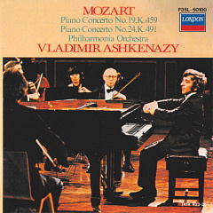 アシュケナージの弾き振りによるモーツァルトのピアノ協奏曲第19,24番#40年前のCD 第469回 不定期連載ということで#40年前のCDという書き込みを続けているところですが、ロンドン(デッカ)の1985年5月25日発売の新譜に、アシュケナージの弾き振りと、フィルハーモニア管によるモーツァルトのピアノ協奏曲第19番と、第24番を収録した1枚がありました。これはアシュケナージがフィルハーモニア管を弾き振りしてのモーツァルトのピアノ協奏曲録音の第2弾だったもので、1978年と79年のアナログ録音です。 この録音の国内初出は1981年5月21日発売のLP(K28C95)で、演奏については「レコード芸術」1981年6月号の月評での宇野功芳氏は「まず「K459」。このピアニストの透明を極めたタッチは相変わらずだが、、強弱のつけ方の豊富、多彩なことにおどろかされる。以前はもっと常識的であった。曲が進むにつれ、感じ切ったエコーや弱音効果、フレーズの終わりのディミヌエンド、気どりや気迫、ちょっとした間などが次々と現れて、聴く者の心をときめかせてくれる。「K491」では第1楽章の深い孤独感や瞑想が印象的だ。第2楽章のデリケートな思いやりの心もすばらしい。少しもやせない、しっとりとした弱音効果は、どこか現実を遠くはなれた回顧的な味わいとなり、それはけっしてほこりくさくならないフィナーレへとつづいてゆくのである。オーケストラも「K459」の冴えたみずみずしい響き、「K491」のやや曇らせた音色というように、曲によって表現法を変えており、ことに後者の木管群が色彩を消して融け合うあたりは音楽にぴったりといえよう。」と評して推薦としていました。 もう一方の高橋昭氏は、「第19番でも、アシュケナージの解釈は本質的に変わっていない。それは自発性に富んでいると同時に抑制がきいていて、感情の生き生きとした、しかも繊細な動きが音楽から細かなニュアンスを引き出している。彼の明快なタッチと愛撫するように柔らかなタッチが連結する時、モーツァルトの音楽ののびやかな感情と暖かい感情は、一瞬のうちに結びつく。同じようにアシュケナージの演奏は力強いがけっして重くならない。強い意志にもとづく解釈でも清純な感情が潤いをもたらしている。第2楽章がその好例であろう。第24番も好演。アシュケナージはオーケストラの導入部からテンポを遅めに設定し、感情を抑えて出発するが、そこで示された暗い情感の燃焼が美しい。ここでも気力の充実した解釈だが、気負ったところはまったくない。彼の解釈は常に自然で、それがモーツァルトの音楽の自然な流れと一致している。」と評して推薦としていました。 ちなみに私の聴いた感想はというと、 第19番は、オーケストラの響きには、妙に明るいところがあるのですが、絶妙なニュアンスの演奏を行っていて惹き付けられますし、アシュケナージのピアノも、粒建ちが良くて、ほどよく快活で、いわゆるバランスとか、加減とかいったもののコントロールが実に見事で、内面から自然に浮き上がってくる音楽することの喜びが伝わってくるような思いのする素晴らしい演奏だと思います。 短調の作品である第24番は、いたずらにシリアスになりすぎることなく、抑制し、秘めたような、オーケストラの演奏が大変印象的で、聴いていて作品の世界への近づきやすさを感じましたし、アシュケナージのピアノも、音色やフレーズのコントロールが絶妙で、聴く者の心に自然に入り込んでくるような、表現の真正さと親密さがあって、聴いていて心洗われる思いがしましたし、今回の2曲に関しては、作品とアシュケナージとの相性の良さを強く感じるものでした。