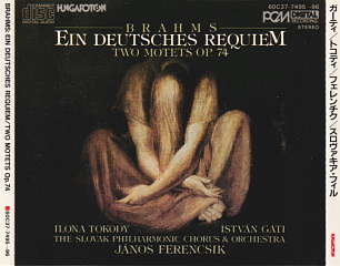 フェレンチク指揮のベートーヴェンの「英雄」とブラームスのドイツ・レクイエム#40年前のCD 第515回 不定期連載ということで#40年前のCDという書き込みを続けているところですが、フンガロトンの1985年6月21日発売の新譜に、ヤーノシュ・フェレンチク(János Ferencsik, 1907-1984)の指揮による、ベートーヴェンの交響曲第3番「英雄」とブラームスのドイツ・レクイエムの2点のCDがありました。ハンガリーは歴史的に名指揮者を輩出し続けており、ニキシュ、ハンス・リヒター、ライナー、セル、オーマンディ、ドラティ、ショルティ、フリッチャイ、ケルテス、ドホナーニ・・・というビッグネームが目白押しですが、フェレンチクはハンガリー国内に留まって活動していたために、国際的な知名度は高くはなかったとはいえ、ハンガリー国立歌劇場の音楽総監督、ハンガリー国立響の音楽監督、ブダペストフィルの音楽監督を歴任するなど、ハンガリー楽壇の屋台骨を背負おう存在であり、1948年から50年までウィーン国立歌劇場の常任指揮者も務めていました。 録音はハンガリーのフンガロトン・レーベルのほか、メジャーからマイナーまでの様々なレーベルに多数残されており、国内盤で発売されたものも多いのですが、フェレンチクが1984年6月12日に77歳で亡くなってから1周年となるのを記念して、フェレンチクの録音のCDリリースが開始されることになり、その第1回発売となったのが、今回の2点でした。いずれもDENONのPCM録音のシステムによるデジタル録音です。 このうち、ベートーヴェンの「英雄」は1983年の新録音で、CDのみでの発売でした。演奏については「レコード芸術」1985年8月号の月評での小石忠男氏は準推薦、諸井誠氏は無印としていました。 この「英雄」の演奏は、一聴すると快調ですっきりした演奏であり、聴き応えもそれほどではないと感じられるかもしれませんが、アンサンブルの水準は高く、どこにも気負いがなく、正確で無駄のない、まさに達人の域にある指揮による、技術水準の観点のみからは計れない、究極の完成度を誇る演奏であり、何度聴いても飽きることのない名演名録音だと思います。 もう一方のドイツ・レクイエムは既出録音のCD化で、国内初出は1984年10月21日発売の2枚組LP(K25C388/9)でした。カップリングの2つのモテット 作品74は録音レパートリーの面からも貴重です。 演奏については、「レコード芸術」1984年12月号の月評での畑中良輔、佐々木幸綱の両氏とも推薦としていました。スロヴァキアのオーケストラと合唱を指揮した演奏なのですが、僅かに暗くくすんだ感じのある響きが作品にふさわしく、フェレンチクの指揮の下で、清らかさも重厚さも素晴らしく、安定感のある演奏をつくりあげており、この作品の特別な名演の1つといいうるものではないかと思います。