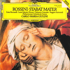 ジュリーニ指揮のロッシーニのスターバト・マーテル#40年前のCD 第519回 不定期連載ということで#40年前のCDという書き込みを続けているところですが、グラモフォンが1985年7月25日に発売していた新譜に、カティア・リッチャレッリとルチア・ヴァレンティーニ・テッラーニのソプラノ、ダルマシオ・ゴンサレステノール、ルッジェーロ・ライモンディのバス、ジュリーニ指揮のフィルハーモニア管と合唱団による、ロッシーニのスターバト・マーテルがありました。ロッシーニのスターバト・マーテルというと、LP時代にはフリッチャイ指揮のグラモフォン録音や、ケルテス指揮のデッカ(ロンドン)録音が比較的知られていたのですが、ここにジュリーニ指揮の録音が発売されて、まさに真打ち登場の感がありました。この後さらにムーティ指揮のEMI録音も発売されることになります。 この録音のCDは1983年9月10日発売の輸入盤規格CD(410 034-2)が初出でしたが、#40年前のCDでは未紹介だったものです。 この録音の国内初出は1982年10月25日発売のLP(28MG0264)で、演奏については「レコード芸術」1982年11月号の月評では、畑中良輔氏が推薦、佐々木行綱氏が無印としていました。独唱陣の歌声は見事ですが、技術的な面が気になるかどうかと、オーケストラや合唱がイタリア的でないというかロッシーニ的でないという点が評価の分かれ目かもしれません。 ちなみに私の聴いた感想は、宗教音楽っぽくないのはそもそも作品がそうですし、重くシリアスな感じはあるのですが、表現力豊かで聴き応えがあり、独唱陣の歌唱も耳の至福を感じるほどの素晴らしさで、この作品の最も優れた録音の1つだと思います。