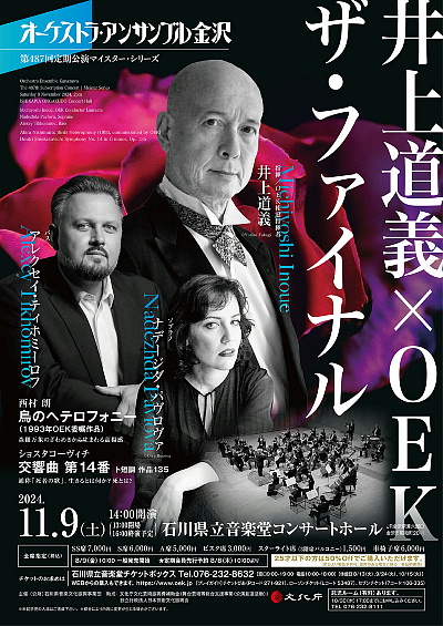 以上とは別に、2007年に日比谷公会堂で行っていた交響曲全曲演奏会のライヴ録音が12枚組のCDで発売されていました。 これらに続いて、井上道義 新ショスタコーヴィチ全集 Vol.9 としてオーケストラ・アンサンブル金沢(OEK)を指揮しての交響曲第14番がSACDハイブリッド盤で発売になりました。2024年11月9日に石川県立音楽堂コンサートホールで行われた、第487回定期公演マイスター・シリーズのライヴ録音です。井上道義がこのオケを指揮した最後の公演でした。 また、今回の解説書は一柳富美子氏によるもので、同氏による歌詞対訳が付されており、詳しい注釈があるほか、アルファベットによる原詩字も、同氏が新作品集(詳細不明)からオリジナルに書き起こしたものが掲載されているのも貴重です。 この井上道義 新ショスタコーヴィチ全集のシリーズは、リリースのスピードがかなりゆっくりしていて、一昨年末で指揮者を引退しているところでもあるのですが、どうやら交響曲全曲録音が残されているようで、さらにリリースが続きそうであり、まずは今回発売の録音を楽しみに聴かせてもらおうと思っています。
