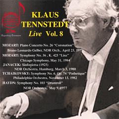 加DOREMIのテンシュテット第8集レアなヒストリカル録音やライヴ・放送録音をリリースしているレーベルの1つであるカナダのDOREMIレーベルでは、昨年からテンシュテットのライヴ録音のリリースを開始しており、昨年10月27日のこの欄に第7集のCDについて書き込んでいたところでしたが、さらに第8集の2枚組CDが発売されていました。今回は5つのライヴ録音が収録されています。収録順に見ていくと、1つめは、1979年9月23日にブルーノ・レオナルド・ゲルバーのピアノ独奏と、北ドイツ放送響を指揮しての、モーツァルトのピアノ協奏曲第26番「戴冠式」です。これはCD-R(米ETERNITIES:ETCD-016/7-S)で発売されていました。また、YouTubeでも聴くことができますが、音は今回のCDの方がよいです。 2つめは、1984年5月31日にシカゴ響を指揮しての、モーツァルトの交響曲第36番「リンツ」です。これもCD-R(米World Music Express:WME-S/M-CDR1201)で発売されていました。また、YouTubeで聴くことができますが、今回のCDの音質の方がずっとよいです。 3つめは、1980年3月3日に北ドイツ放送響を指揮しての、ヤナーチェクのシンフォニエッタです。これもCD-Rで(米En Larmes:ELS05-652、米Great Artists:GA4-65)で発売されていました。また、YouTubeで聴くことができ、かなり音がよいのですが、今回のCDの音質はさらによいです。 4つめは、1982年11月13日にフィラデルフィア間を指揮しての、チャイコフスキーの交響曲第6番「悲愴」です。これもCD-R(米"0""0""0"CLASSICS:TH-011)と、CD(伊MEMORIES:ME101/42)で発売されていました。第3楽章の終了後に拍手が起きているライヴ録音としても知られています。また、YouTubeで聴くことができ、それも3つもあって、いずれもまずまずの音なのですが、今回のCDの方が音がよいです。 5つめは、1977年5月9日に北ドイツ放送響を指揮しての、ハイドンの交響曲第103番「太鼓連打」です。これもCD-Rで(米TIENTO:CD-12001/2)で発売されていました。また、YouTubeで聴くことができ、かなり音がよいのですが、今回のCDの音質はさらによいです。 ということで、非常にバラエティに富んでいるというか、雑多な印象すらある収録内容で、初出録音がないのは残念ですが、こうして入手可能となったことを喜びたいですし、改めて楽しみに聴かせてもらおうと思っています。