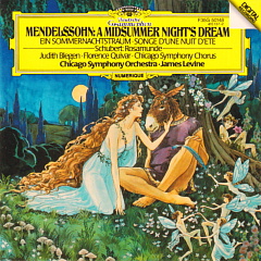レヴァイン指揮、シカゴ響の「真夏の夜の夢」と「ロザムンデ」#40年前のCD 第535回 不定期連載ということで#40年前のCDという書き込みを続けているところですが、グラモフォンの1985年8月25日発売の新譜に、レヴァイン指揮のシカゴ響ほかによる、メンデルスゾーンの劇音楽「真夏の夜の夢」の抜粋と、シューベルトの劇音楽「ロザムンデ」の抜粋をカップリングした1枚が発売されていました。レヴァインはすでに、メジャレーベルに幅広いレパートリーの録音を行うようになっていたのですが、メンデルスゾーンの作品を録音するのはこれが初めてでした。自身が音楽監督を務めるラヴィニア音楽祭との共同制作で、1984年6月2,3日にシカゴのオーケストラホールでレコーディングセッションが行われたものです。 これはCDとLP(28MG0862)の同時発売で、演奏については「レコード芸術」1985年10月号の月評での志鳥栄八郎氏は無印、藤田由之氏は推薦としていました。 ちなみに私の聴いた感想はというと、レヴァインはシカゴ響の高い演奏能力を遺憾なく発揮させた、明快でパワフルでキレのある演奏をつくり出しており、曲趣に応じた多彩な表現も存分に行えており、響きも冴え渡っていて、聴いていて爽快感のある演奏なのですが、何もかもが白日の下にさらされているような感があり、メルヘンチックな趣は希薄で、その点では多少の白々しさを感じてしまうところで、これは聴く人によって評価が分かれる演奏ではないかと思いました。